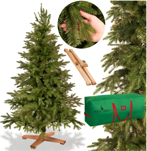 | Pamatdati: Zīmols: Royal Trees® Eglītes veids: Himalaju egle Kopējais augstums (no zemes): 150 cm Adatu materiāls: ekoloģiska PE/plastmasas folija Adatu krāsa: zaļa Vainags: Kopējais augstums: 150 cm Maksimālais platums (platākajā vietā): apm. 90 cm Platums apmēram 70 cm augstumā: apm. 55 cm Gala garums (virsotne): 23 cm Līmeņu skaits: 11 + gala Zaru skaits: 41 Padomu (tipsu) skaits: 310 Padomu platums (atsevišķie zari): 2,5 cm Attālums no zemes līdz vainagam: 26 cm Zaru gali: smaili Vainaga daļu skaits: 1 Stāvvada detaļas: Materiāls: koks Tips: četrkājains Krāsa: brūna Augstums: 8,5 cm Vienas kājas garums: 22 cm Attālums starp kājām (mērīts galos): 31 cm Pārsegs: Materiāls: 100 % poliesters Krāsa: zaļa, sarkana Iešūts logiņš kartiņai Vienvirziena rāvējslēdzējs Uz pārsega ir Royal Trees® logotips Pārsega izmēri: Augstums: 40 cm Garums: 125 cm Platums: 50 cm Logiņa izmērs: 10 × 7 cm Augšējais rokturis: Platums: 2,5 cm Cilpas garums (no pārsega virsmas līdz cilpas augšai): apm. 42 cm Kopējais roktura garums: apm. 84 cm Sānu rokturis: Platums: 2,5 cm Garums: 20 cm Papildinājumi: Iepakojuma izmēri: 120 × 35 × 30 cm Ultra reālistisks izskats Dvīkrāsu folija (zaļa un brūna) imitē īstu zariņu Svarīgi: lai iegūtu labu efektu, zarus jāizklāj un jāvairo ar rūpību Izmēru tolerances: ± 2 % Eglītes konstrukcija ir smaga un kvalitatīvi izgatavota Zari ir biezi un kupli Produkts paredzēts pašmontāžai |