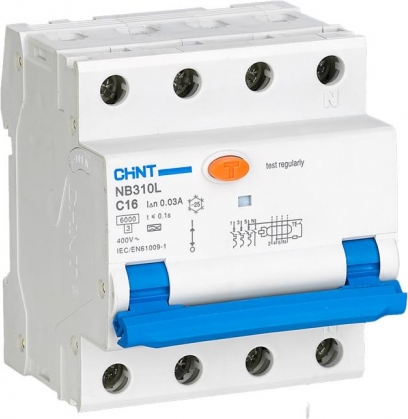 Chint Circuit breaker RCBO, NB310L/3N, 3P+N, C20, 30mA, A, 6kA NB310L3PN30MAA20C