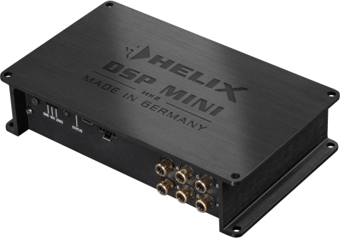 HELIX DSP MINI MK2 The next generation of the miniature DSP The smallest HELIX signal processor gets a worthy successor with the DSP MINI MK2. Like its ancestor, this compact DSP is a real technology package. A powerful 64 Bit audio DSP and BurrBrown converters combined with 96 kHz sampling rate and high resolution audio bandwidth up to over 40 kHz provide exceptional sound quality. The MK2 is also at the top level in terms of measured values – a higher maximum output voltage of 6 Volts, significantly increased signal-to-noise ratio and reduced THD ensure the perfect sound. Of course, the DSP MINI MK2 is based on the ACO platform with 32 Bit CoProcessor, which not only handles all control tasks with incredible speed, but also enables proprietary sound effects such as Augmented Bass Processing or RealCenter and, last but not least, a channel-separated Input EQ including Input Signal Analyzer (ISA).