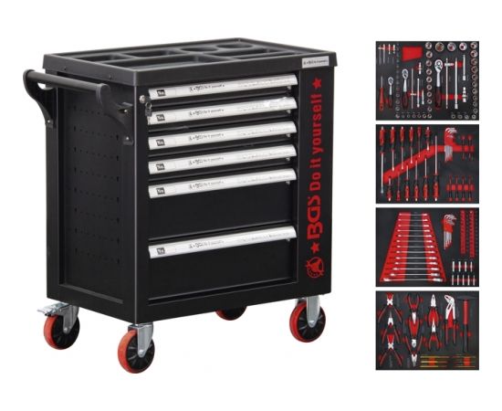 Ietver 4 EVA putu paplātes ar šādiem instrumentiem: - ligzdu komplekts, 6,3 mm (1/4"), 10 mm (3/8"), 12,5 mm (1/2") piedziņa, 61 gab.