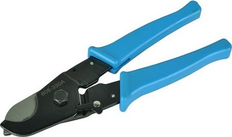 | Ratchet cable cutter Features: For fast cutting of flat or round cables up to 70 mmІ. Not for cutting steel or steel wire. Comfortable to use thanks to design features and low weight. Specifications: Cutting range: max. 70 mmІ. Length: 220mm. Weight: 290g. Material: Carbon steel PP + PVC. Warranty: 24 months. |