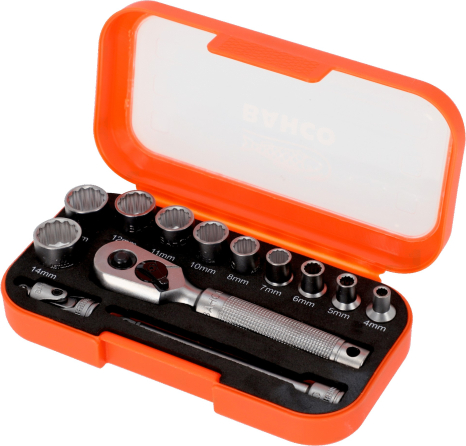 Bahco 1/4" Square Drive Socket Set with Metric Bi-Hex Profile - 13 Pcs