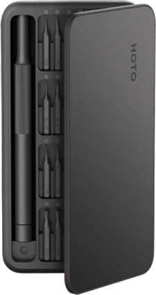 Precision Screwdriver Set Hoto QWLSD009, 28 in 1HOTO QWLSD009 set includes 28 different precision screwdrivers which are made of high quality S2 steel. Thanks to their ergonomic design they ensure comfort of use even during long time of work, additionally they have built-in magnets which make the use of tools easier. The elements have been placed in a practical, compact case that looks modern and facilitates transport. Useful in many situationsIn the set you will find 28 types of bits from 11 basic types - these include flat, Phillips, triangular, Y-shaped and Torx screwdrivers. These pieces will prove useful in various activities and will make it easier, for example, to repair smartphones, digital cameras, glasses, watches or small toys. Convenient useThe set includes a special handle for comfortable use of bits. Thanks to the use of aluminum alloy it is exceptionally light, yet surprisingly durable. The built-in magnet makes it easy to install the bits and also makes the bits attract small screws. Noteworthy is also the knurled surface of the handle - thanks to it the product does not slip out of your hand. Excellent qualityWhat makes the screwdrivers included in HOTO QWLSD009 set so durable? They are made from high grade S2 steel and have a hardness of 60 HRC. CNC machining was used during their production, which makes the screwdrivers extremely durable and strong. They also stand out for their long service life and are resistant to rusting. Magnetic caseThe bits come in a practical case for easy storage. Thanks to the integrated magnet, they remain in position and you needn't worry about losing them. The case opens up to 115° and makes it easy to remove the bits, and it also has a spring-loaded hinge so you can open and close it easily and conveniently. Take it with youHOTO QWLSD009 precision screwdriver set was designed to accompany you almost everywhere. Thanks to the use of aluminum alloy and ABS the case is light and its size is close to the dimensions of a smartphone. So you can easily pack it in your backpack and take it anywhere. The concave bottom will reduce friction and allow you to keep the case clean. Set includes: