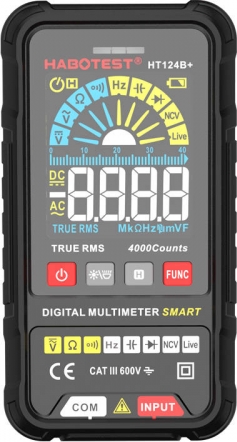Many useful functionsHabotest HT124B+ digital universal multimeter is a handy device that surprises with the enormity of its capabilities. It allows to measure with high precision AC and DC voltage, resistance, continuity or capacitance, among others. In addition, it offers a Live Test function, enables diode testing, non-contact voltage detection (NCV) and much more. Importantly, the multimeter has practical buttons with which you can efficiently select a function.