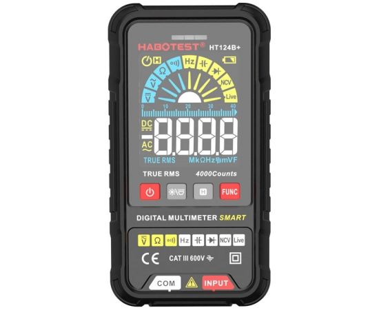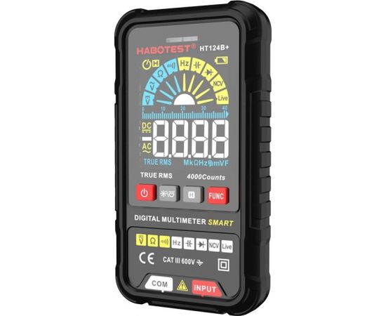 Habotest HT124B+ digital universal multimeterHabotest HT124B+ digital multimeter is a multifunctional device that will prove useful during electrical work. The product allows you to measure voltage, resistance, capacitance and many other parameters. The multimeter has an easy-to-read display that allows you to conveniently read the measurement results, plus it is equipped with a flashlight and practical buttons.