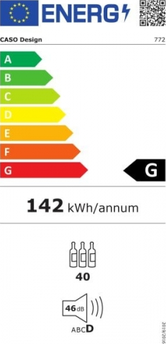 Caso Wine cooler WineChef Pro 40 Energy efficiency class G, Free standing, Bottles capacity Up to 40 bottles, Cooling type Compressor technology, Silver