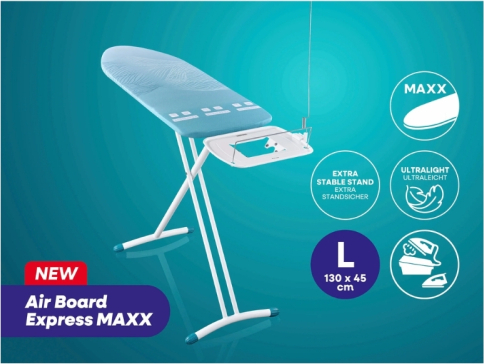 Гладильная доска Leifheit Air Board Express L Solid MAXX предлагает все необходимое для современной гладильной доски. Она легче любой гладильной доски из перфорированного металла, но при этом абсолютно устойчива, и имеет очень большую гладильную поверхность с чехлом из чистого перфорированного хлопка. Чехол пропускает пар от утюга и обеспечивает оптимальное впитывание влаги. Air Board Express L Solid MAXX легко устанавливается и складывается благодаря гладильной поверхности из сверхлегкого специального пластика. Гладильная доска имеет фиксированный держатель для парогенератора из металла и подходит для всех распространенных парогенераторов, с надежной подставкой для обычных утюгов. После глажки рубашки или куртки можно повесить на держатель для вешалок на подставке. В комплект входит гибкий держатель для шнура, чтобы шнур питания не мешал во время глажки. Идеально подходит для паровых утюгов благодаря паропроницаемому чехлу из перфорированного хлопка.