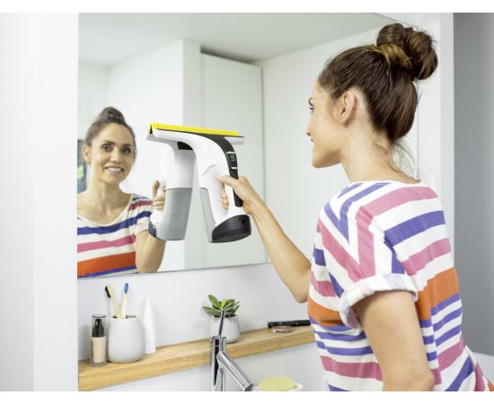 Kärcher jau atkal ir uzlabojis oriģinālo Window Vac un izstrādājis vēl labāku modeli – WV 6 Plus – ar novatorisku savācējgumiju tehnoloģiju un ilgāku baterijas darbības laiku. Jaunā, garākā savācējgumija ļauj Jums ar vienu kustību nosūkt lieko šķidrumu no virsmām. Window Vac baterijas darbības laiks – 100 minūtes – ļauj Jums darboties vēl ilgāk, turklāt iekārtai ir ekrāns, kurā atlikušais laiks ir norādīts minūtēs, lai Jūs varētu precīzi plānot savu laiku. Kā ierasts, prātīgā izsmidzināšanas pudeles, mikrošķiedras drāniņas un nosūkšanas funkcijas kombinācija gādā par īpaši iedarbīgu tīrīšanu un mirdzoši tīriem logiem bez švīkām un nosēdumiem. Ergonomiskais Kärcher Window Vac 6 Plus nodrošina īpaši higiēnisku logu mazgāšanu, jo nav tiešas saskares ar netīro ūdeni.