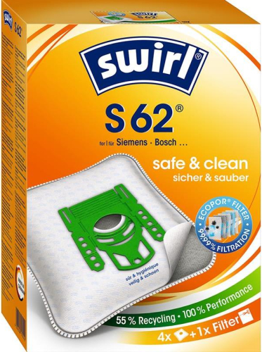 Swirl® S 62 EcoPor® vacuum cleaner bag. Your right bag for Siemens and Bosch vacuum cleaners. | ||||||||||||||||||||||||||||||||||||||||