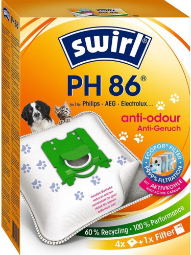 Swirl® PH 86 MicroPor® Plus NeutralizAir® vacuum cleaner bag Dust bags 4 pcs + 1 filter.