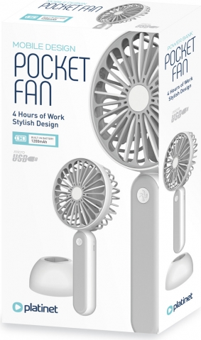 Platinet вентилятор с аккумулятором 1200mAh, белый/серый (45246)