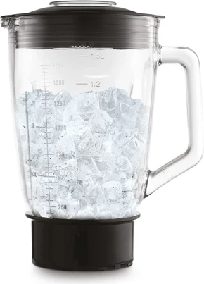 Мощность двигателя 1500 Вт. 6 титановых лезвий 2 скорости + импульсный режим Стеклянная чаша объёмом 1,5 л Персональный блендер 2-в-1 Не содержит бисфенол А Многофункциональность Современный дизайн с подсветкой циферблата Замок безопасности Съёмная крышка со стопором для дозирования ингредиентов Нескользящие ножки