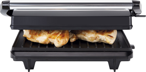 Антипригарное покрытие без ПФОА. Размер плиты: 230 х 145 мм. Плавающая шарнирная система. Равномерное давление поджаривания. Готовит все виды рыбы и мяса. Термостойкая ручка. Контрольный индикатор. Закрывающий клип. Напряжение 230 В Мощность 700 Вт.