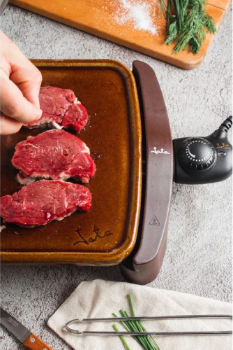 | Терракотовый гриль, высокая температура приготовления. Чрезвычайная твердость. Изготовлено вручную в Испании. Неизменен в использовании и с течением времени. Готовит все виды мяса и рыбы. Уникальный и натуральный вкус. Поверхность 460 х 280 мм. Съемный термостат с регулировкой температуры. Ручки холодного прикосновения. Переносной к столу. Легко очистить. Напряжение: 230 В Мощность: 1600 Вт |
