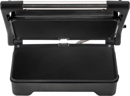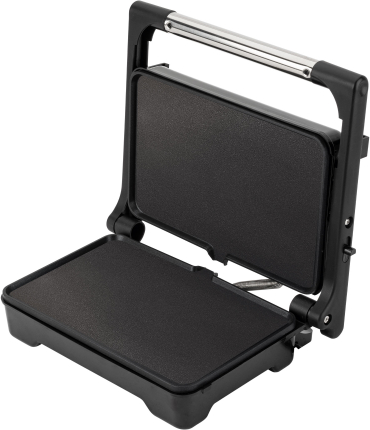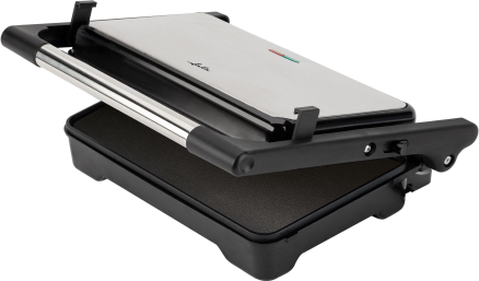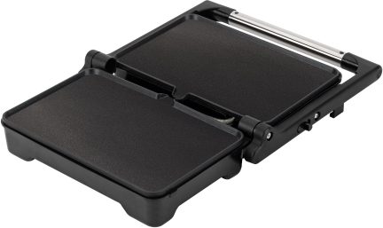 2 пластины: 26 x 16,5 см. Откидная верхняя пластина. Равномерное давление при жарке. Антипригарное покрытие без ПФОК. Угол раскрытия 180°. Ненагревающаяся ручка для открывания. Поддон для жира. 2 независимых индикатора: включено / готово. Вертикальное хранение. Фиксатор ручки / ножки для открывания. Нескользящее дно. Защита от перегрева. Напряжение 230 В. Мощность 1500 Вт.