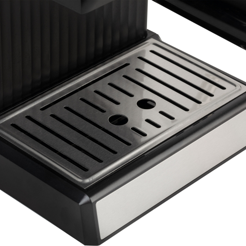 Давление 20 бар с независимым регулятором пара. Съёмный резервуар для воды объёмом 1,8 л Автоматическая регулировка температуры. Простое управление благодаря 3 кнопкам: приготовление кофе, функция нагрева/взбивания пены, включение/выключение. В комплекте: держатель фильтра, фильтры на 1 и 2 порции кофе и мерная ложка. Автоматическое отключение. Соответствует требованиям ERP. Подогреваемая поверхность для поддержания чашек тёплыми. Съёмный поддон для сбора капель. Мощность 850 Вт