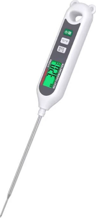 Habotest HT690 Food ThermometerThe Habotest HT690 food thermometer with pin probe provides instant and accurate measurement of the temperature of the food being prepared, both in the home kitchen and in the food industry. With a wide measuring range (from -50°C to 300°C), the device is ideal for baking, cooking, grilling and temperature monitoring of liquids. The easy-to-read LCD screen allows you to conveniently check the reading of the results in degrees Celsius or Fahrenheit.