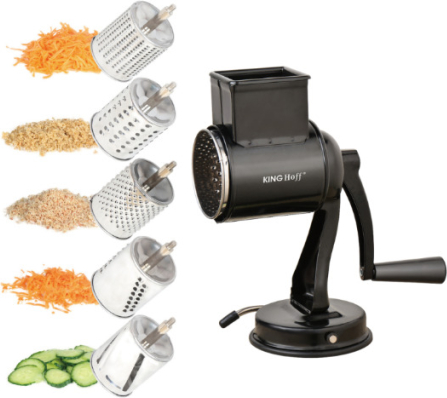 Цилиндрическая тёрка, с 5 сменными картриджами, чёрная, KINGHoff, KH 1951