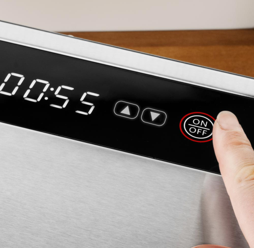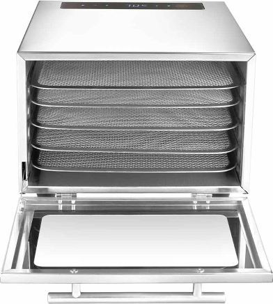 Компактный профессиональный дегидратор (28,2 x 34,7 x 20,6 см) — идеальный прибор для небольших объемов и ограниченного пространства. В комплект входит подробная книга рецептов (72 страницы) для приготовления фруктовых и овощных чипсов, фруктовой пастилы, батончиков мюсли, сладких и соленых закусок, вяленой говядины и сушеной рыбы. Сохраняет продукты питания дольше без консервантов — улучшает вкус, сохраняет питательные вещества и витамины, также идеально подходит для грибов, трав и домашних чаев. Также подходит для лакомств для животных или украшений. 5 решеток для сушки из высококачественной нержавеющей стали (Ш 25,8 x Г 20,5 см) позволяют сушить разные продукты одновременно, но отдельно друг от друга. Вентилятор и нагревательный элемент сзади обеспечивают абсолютно равномерную сушку по всему пространству для приготовления пищи, что обеспечивает наилучшие результаты. Корпус из высококачественной гастрономической нержавеющей стали: стильный, легкоочищаемый и гигиеничный Сенсорная панель управления температурой и таймером 24-часовой таймер с автоматическим отключением и цифровым контролем температуры Регулируемая температура от 20°C до 90°C с шагом 5°C позволяет сушить сырые продукты 1 форма для батончиков мюсли на 6 домашних батончиков Стеклянная дверь, отключаемое светодиодное внутреннее освещение. Малошумный вентилятор 400 Вт, длинный соединительный кабель 1,30 м, вес 4,7 кг Легко чистить, аксессуары можно мыть в посудомоечной машине.