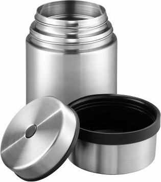 Aprīkots ar parocīgu dubultsienu vāku, ko var izmantot kā bļodiņu, un uzskrūvējamu korķi/vāku, ar tajā iestrādātu ventili spiediena noņemšanai.