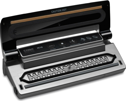 Fully automatic vacuuming and welding; Ideal for storing and maintaining the freshness of fish, meat, vegetables and fruit; Variable vacuum strength thanks to the vacuum stop button: Particularly suitable for pressure-sensitive foods; Practical, separate welding function; Simple weld seam up to 30 cm wide (any bag length); Compact design, low weight More information: vc-10-plusedition (external link) | ||||||||||||||||||||||||||||||||||||||||||||||||||||||||||||||||||||||