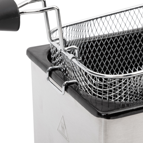 Объём 3 л Погружной нагревательный элемент из нержавеющей стали. Корпус из нержавеющей стали. Специальная сетка «Filtra Plus» для фильтрации масла. Вместительная корзина со складной ручкой. Съёмная эмалированная ванна. Полностью разборная для лёгкой очистки. Регулируемый термостат. Система предотвращения перемешивания «Cool Zone». Защита от перегрева. Индикаторы питания и готовности. Крышка из нержавеющей стали с ручкой и козырьком. Подходит для установки во время жарки. Боковые ручки. Напряжение 230 В. Мощность 2000 Вт.