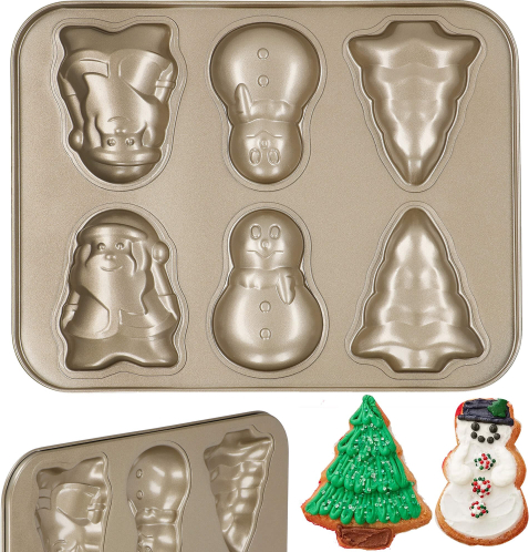 | Pamatdati: Zīmols: Springos® Krāsa: zelts Materiāls: tērauds Produkts nav paredzēts lietošanai trauku mazgājamā mašīnā Prece nav paredzēta lietošanai mikroviļņu krāsnī Prece ir apstiprināta saskarei ar pārtiku Raksts: svētku Izmēri: Kopējais garums: 35 cm Kopējais platums : 26 cm Kopējais augstums: 2,5 cm Veidņu izmēri: 2x Ziemassvētku eglīte: 11 x 9 cm (P x P) 2x Sniegavīrs: 11 x 7,5 cm (P x P) 2x Ziemassvētku vecītis: 11 x 8 cm (P x P ) |