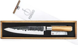 | Pavāra nazis ir visdaudzpusīgākais nazis virtuvē un neaizstājams rīks katram pavāram. Lieliski piemērots gaļas, zivju vai dārzeņu, kā arī sīku garšaugu griešanai. Asmeņa forma ir tipiska Eiropas stila. Forged oil naži ir izgatavoti no japāņu tērauda 440, un to Rokvela cietības līmenis ir 58. Visi Forged naži ir izgatavoti ar rokām un tiek pasniegti greznā kastītē. Specifikācijas: Izmēri: 37,3 x 8,5 x 3,9 cm Materiāli: olīvkoks, 440C tērauds. Mazgāt tikai ar rokām. |