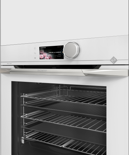 De Dietrich French quality kitchen appliances are a perfect combination of functionality and elegance! Ai Talent Probe provides absolute control of the core temperature. Inserted into the preparation, the Talent Probe Bluetooth probe precisely measures the internal heat and the oven heats up and stops as soon as the result is obtained. Smart Navigation TFT 4'3 high-definition screen, enriched with innovative features. Sublime photos present the dishes and recipes predefined in automatic cooking, with surprising and unique realism. Diamond Selector as the delicate, tactile and ergonomic navigation selector, of exclusive design, provides an unmatched fluidity of movement for ultimate precision adjustments, thus sublimating excellence. Smart Control allows you to conveniently control the operation of the oven through a smart device. Thanks to Wi-Fi connectivity, you can control the operation of the device from behind the kitchen table or even from the grocery store, thereby saving valuable time. The app is free to download. Auto Mode is able to control the oven and program a multitude of dishes. Depending on the recipe selected, the oven will automatically suggest the best way to cook your dish for an excellent result. Manual Mode with direct access offers the best traditional cooking tools to create your own recipe. Because your oven knows your cooking habits better than anyone, it also offers you three options at the beginning and/or end of cooking that you simply activate to perfect your preparations: give a more golden and crispy finish as desired, keep your dish at a tasting temperature without the risk of overcooking, extend the cooking of your preparation by 5 minutes without adjusting the settings. Culinary Guide recipes only requires you to enter the weight of the dish and the oven automatically determines the appropriate cooking mode, the ideal temperature and the cooking time required right down to the minute. Low Temperature exclusive Auto function cooks meat, poultry, fish, gratins and yoghurt recipes evenly, regularly and gently. This perfectly controlled cooking produces juicy dishes with incomparable tenderness. There are 14 different recipes to choose from. Pastry and Dessert recipes contain a suitable recipe for every taste. These recipes are indispensable in the preparation of traditional and modern breads and desserts such as macaroons, chocolate fondant, rum baba, etc. There are 33 different fully automatic recipes to choose from. World Recipes includes savoury and sweet recipes from all over the world. You can choose between 22 sweet and 16 savory recipes from countries such as Italy, Argentina, Japan, Morocco, etc. Air Fry allows you to enjoy healthy and delicious dishes thanks to the Air Fry function combined with the large perforated dish specially designed for very crispy results. Keep Warm ensures that dishes remain at serving temperature until needed. Defrost allows you to quickly and hygienically bring frozen products to room temperature. Dough Rising is suitable for raising all types of dough, such as bread, brioche or pizza. Drying allows food to be dried in the oven at a temperature of 35-80 °C while preserving their nutritional qualities. Sabbath allows food to be cooked for a long time (25h or 75h) at a low temperature of 90 °C. The program is used, for example, to prepare shredded meat. Pyrolysis is a highly efficient self-cleaning system, during which the oven heats up to 500 °C, charring the dirt accumulated inside the oven. After the end of the program, when the oven cools down, all you have to do is wipe the ash with a cloth. You can choose between 3 programs of different intensity:
