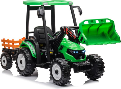 Lean Cars Hercules Battery-Powered Tractor With Trailer, Green 24V