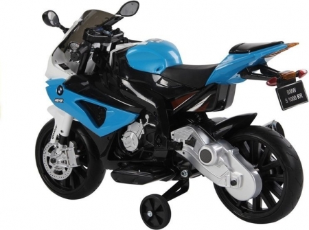 BMW S1000RR Blue - Electric Ride On Motorcycle If your kids feel strong about vehicles and love different type of motorcycles this would be just perfect. Well known brand BMW is always a good choice. This motorcycle has the official license of the BMW group which mean it look just like the real model and its a perfect imitation. BMW S1000RR kids motorcycle will be great for little drivers who still work on keeping balance during ride. In its construction there are little, black, side wheels to support small travelers and allow them comfortable and safe ride. Beautiful and fancy look will make you stand out anywhere you go! Presented motorcycle is powered with 12V7Ah battery and 2x45W engine with maximum speed from 3 to 5 km/h. This model is equipped with LED lights, tinted windshield, side mirrors, EVA wheels which allow you to use this motorcycle on the different surfaces and make ride more comfortable for your child. This model was designed for the kids who are over 3 years old, all materials used to build this large and fancy vehicle has been made from very strong and environment friendly parts. This car has CE Certificate ensuring safe use and that the requirements of the European Union was met. Motorcycle is packed in original box with manual instruction for self assemble which should take no longer than 30 minutes. Motorcycle dimensions: 100 cm x 28 cm x 68 cm Weight: 15 kg | ||||||||||||||||||||||||||||||||||||||||||||||||||||||||||||||||