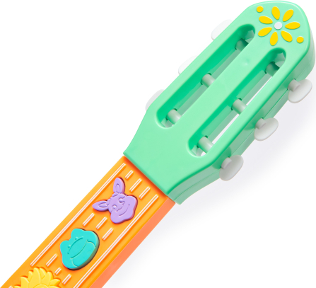 | Погрузись в мир музыки и приключений с музыкальной игрушкой "Чаранго: Играем с Дорой"! Эта яркая игрушечная гитара выглядит точно так же, как у Доры в мультфильме. Вдохновлённая южноамериканским чаранго, игрушка позволяет детям почувствовать себя настоящими музыкантами. Длина инструмента — 48 см, как у укулеле. Гитара оснащена пятью кнопками-ладками в форме персонажей и струной для перебора, создающими уникальные звуки, которые можно комбинировать. Встроен специальный игровой режим, а также в комплект входит коллекционная карточка. Игрушка на английском языке или только со звуками. | ||||||||||||||||||||