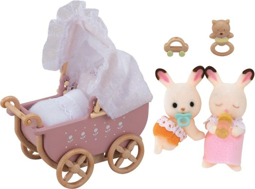 Figurka Epoch Sylvanian Families - Zestaw z bliźniakami królików z czekoladowymi uszkami + wózek dziecięcy (5018)