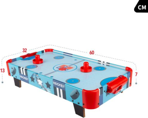 Ощутите азарт хоккея дома с аэрохоккейным столом CB Games! Этот компактный стол идеально подходит для двух игроков, легко устанавливается на любой поверхности и дарит часы веселья. Он включает в себя ручное табло, две шайбы и две хоккейные ракетки. Стол изготовлен из прочного дерева и оснащен светодиодной подсветкой, которая освещает игровое поле, делая игру еще более захватывающей. Идеально подходит для детей от 6 лет, развивает координацию рук и глаз и способствует социализации. - Возраст и ценности: рекомендуется для детей от 6 лет, улучшает координацию рук и глаз и способствует социализации. - Стол для аэрохоккея с подсветкой: размеры 60 x 32 x 13 см, легко устанавливается на любой ровной поверхности и оснащен ручным табло для отслеживания голов. Дополнительный бонус: светодиодная подсветка, освещающая всё игровое поле для дополнительного азарта. В комплекте: 2 плавающие шайбы и 2 хоккейные лопатки. Принцип работы: электрическая система плавно перемещает шайбу по поверхности, позволяя быстро и точно управлять лопатками. Питание от электросети. Безопасный и прочный: изготовлен из прочной, долговечной древесины и оснащен предохранительными анкерами, которые предотвращают случайное складывание стола во время игры. ВНИМАНИЕ! Не подходит для детей младше 36 месяцев! Содержит мелкие детали! Опасность удушья! Перед тем, как дать игрушку детям, извлеките её из упаковки. Храните игрушку в недоступном для детей месте, если на ней есть важная информация. Сделано в Китае. Импортер: Colorbaby. S.L. Calle Cordoba 15. Pol. Ind. Altac I Aptdo. Correos 40, 03440 Ibi, Alicante, Spain, e-mail: info@colorbaby.es Маркировка CE — это декларация производителя о соответствии продукции требованиям применимых к ней директив Европейской комиссии.  |