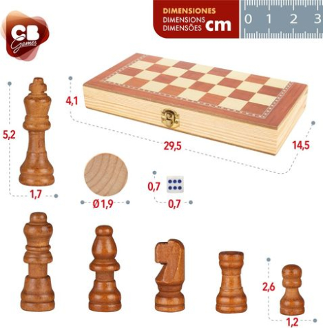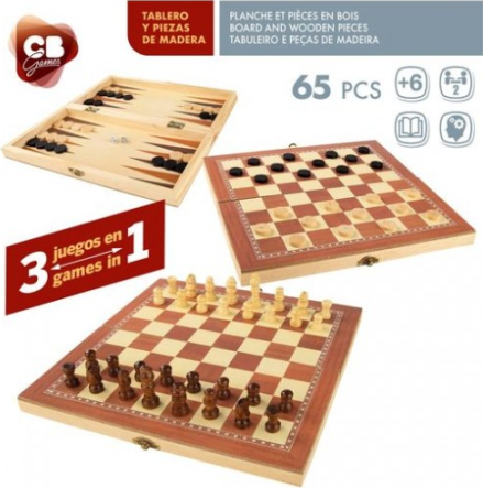 Классическая игра в шахматы 3 в 1 от CB Games. Деревянная доска размером 29 x 29,5 см трансформируется в футляр. Откройте его для игры и закройте для хранения фигур! Вы можете играть в шашки, шахматы или нарды. Игра включает в себя доску и 65 коричневых и белых шашек, нарды и шахматные фигуры. Игра рассчитана на 2 человек, рекомендуется для детей от 6 лет. Развивает сообразительность и логику. Тренируйте свою сообразительность с помощью классической игры в шахматы, шашки и нарды от CB Games. В комплекте: 1 деревянная доска и 65 коричневых и белых шашек, нарды и шахматные фигуры. Доска закрывается и превращается в футляр для хранения фигур внутри. Каждая фигура имеет паз для соединения, чтобы фигуры не повредились. Ценности: игра, которая развивает сообразительность, логику, умственные способности и социализацию. Возраст: рекомендуется для детей старше 6 лет и предназначена для игры 2 человек. Набор настольных игр: шахматы/шашки/нарды (деревянный). Подходит для детей от 6 лет. ВНИМАНИЕ! Не подходит для детей младше 36 месяцев! Содержит мелкие детали! Опасность удушья! Перед тем, как дать игрушку детям, извлеките её из упаковки. Если на игрушке есть важная информация, храните её в недоступном для детей месте! Беречь от огня! Сделано в Китае. Импортер: Colorbaby. S.L. Calle Cordoba 15. Pol. Ind. Altac I Aptdo. Correos 40, 03440 Ibi, Alicante, Spain, e-mail: info@colorbaby.es Маркировка CE — это декларация производителя о соответствии изделия требованиям директив Европейской комиссии.  |
