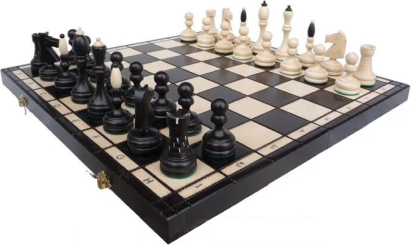 | Chess Classic, klasiska galda spēle ar augstas kvalitātes koka šaha figūrām. Šaha dēlis ir izgatavots no bērza, iekšpuse ir izklāta ar materiālu, salokās uz pusēm un aiztaisās. Šaha figūras ir izgatavotas no koka. Karaļa augstums 100 mm. Dēļa izmēri: 500 x 500 x 60 mm. Salocīta dēļa izmēri: 500 x 250 x 30 mm. Svars: 2 kg. |