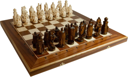 | Šaha bruņinieks, ekskluzīva galda spēle ar augstas kvalitātes koka šaha figūrām. Šaha dēlis ir izgatavots no bērza, iekšpuse ir izklāta ar materiālu, salokās uz pusēm un aiztaisās. Šaha figūras ir izgatavotas no koka. Karaļa augstums 125 mm. Dēļa izmēri: 645 x 645 x 40 mm. Salocīta dēļa izmēri: 645 x 323 x 80 mm. Svars: 4,65 kg. |