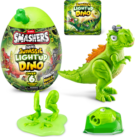 | Esiet gatavi dauzīt, rakt un izlauzties cauri gļotām, lai tiktu pie vairāk nekā 10 Smashers pārsteigumiem. Sasitiet Jurassic olu ar gaismiņām un izrocieties cauri meteorītiem un gļotām, lai atklātu dinozauru daļas. Izveidojiet savu Smash-o-saur un vērojiet, kā tas izgaismojas Juras laikmeta noskaņās! Ir trīs dinozauri, ko varat izrakt kolekcijas papildināšanai.. Izrociet, izveidojiet un cīnies ar Smashers! | ||||||||||||||||||||