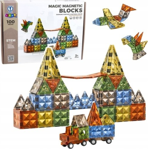LeanToys Klocki Magnetyczne Konstrukcyjne Kreatywne Figury Pojazd 3D 100 el.