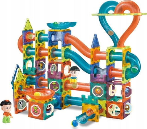 LeanToys Świecąca Zjeżdżalnia Dla Kulek Klocki Magnetyczne 202 Elementy LEAN Toys