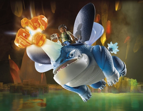 PLAYMOBIL 71082 Dragons: The Nine Realms - Plowhorn & D'Angelo, Construction Toy (With Crystal Rock to Blow Up)