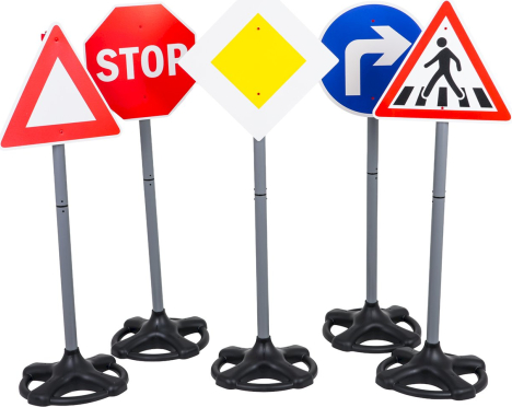 RoGer Обучающий Набор Дорожных Знаков 5 шт. — это игровой и образовательный комплект для детей от 3 лет и старше, включающий 5 крупных разноцветных дорожных знаков из прочного пластика, таких как знак «STOP», предупреждающий треугольник, пешеходный переход, главная дорога и указатель движения направо, который помогает ребёнку развивать знания о правилах дорожного движения и безопасном поведении в игровой форме; знаки устойчивы, легко держатся в руках и подходят для игр дома, в детском саду или на игровой площадке, стимулируя внимание, моторику и понимание основных принципов безопасности на дороге. |