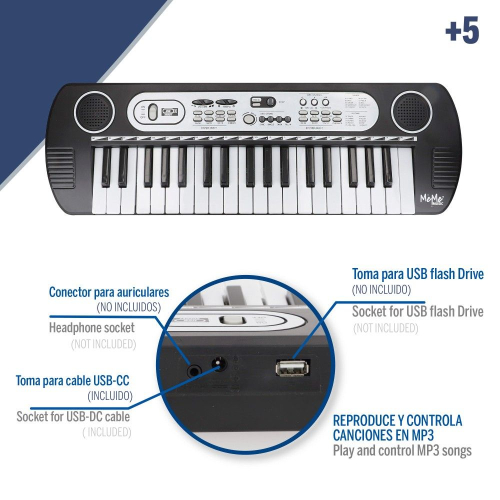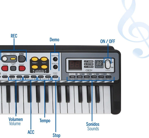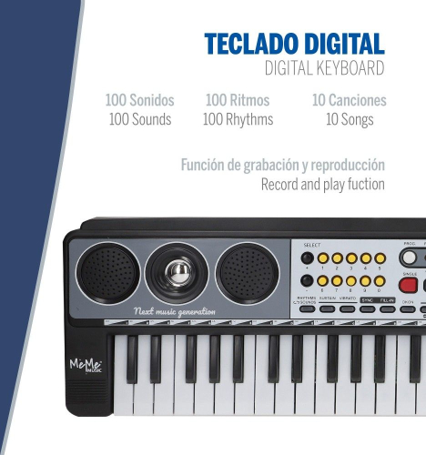 Откройте для себя электронную клавиатуру MeMe Music с 49 клавишами! Размеры 54 x 17 см, она предлагает множество функций, таких как регулировка громкости и темпа, запись и воспроизведение, а также функцию обучения OKON. Кроме того, в ней есть звуки, ритмы, мелодии, эффекты сустейна, вибрато и многое другое. С ней будет невозможно заскучать! Работает от 4 батареек типа АА (не входят в комплект), а также в комплекте адаптер питания (в комплекте) и разъём для конденсаторного микрофона и USB-накопителя (не входят в комплект). Идеально подходит для развития сенсорного восприятия и музыкального творчества у малышей. Увлекательное и познавательное приключение в одном инструменте! - Возраст: рекомендуется для детей от 5 лет и старше - Учитесь играть мелодии с этой замечательной электронной клавиатурой MeMe Music с 49 клавишами! Размеры инструмента: 54 x 17 см. В комплект входят разъём для адаптера питания (в комплекте), а также разъёмы для конденсаторного микрофона и USB-накопителя (в комплект не входят). Функции: регулировка громкости и темпа, запись и воспроизведение, включение/выключение, воспроизведение, старт/стоп, кнопки «Вставка» и «Синхронизация», управление MP3, функция обучения OKON и выбор демо-версий, ритмы, песни и звуки. Работает от 4 батареек типа АА (в комплект не входят). Звуки, мелодии и эффекты: 100 звуков, 100 ритмов, 10 предзаписанных произведений, 5 звуков перкуссии или голосов животных, а также эффект сустейна и вибрато. Характеристики: портативная клавиатура, стимулирующая сенсорную стимуляцию и развивающая мелкую моторику, координацию рук и глаз, а также творческие способности. Сделано в Китае. Импортер: Colorbaby. S.L., Calle Cordoba 15, Pol. Ind. Altac I Aptdo. Correos 40, 03440 Ibi, Аликанте, Испания, эл. почта: info@colorbaby.es Маркировка CE — это декларация производителя о соответствии продукции требованиям применимых к ней директив Европейской комиссии. |