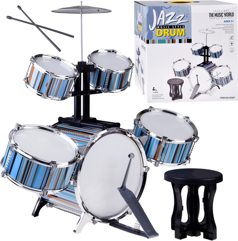 | Šis bungu komplekts ir lielisks veids, kā iepazīstināt mazus bērnus ar mūzikas un ritma pasauli. Tas palīdzēs bērniem attīstīt radošumu, smalko motoriku un ritma izjūtu, vienlaikus izklaidējoties! Piemērots gan meitenēm, gan zēniem, zilā, tirkīza un brūnā krāsu gamma ar smalkiem akcentiem padara instrumentu pievilcīgu un aicinošu.