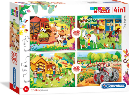 Clementoni, SuperColor 4 in 1, The Farm, Puzzle, Unisex, 3+ years, 2 x 20 + 2 x 60 pcs