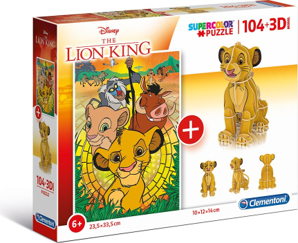 Clementoni, SuperColor, Lion King 3D, Puzzle, Unisex, 6+ years, 104 pcs
