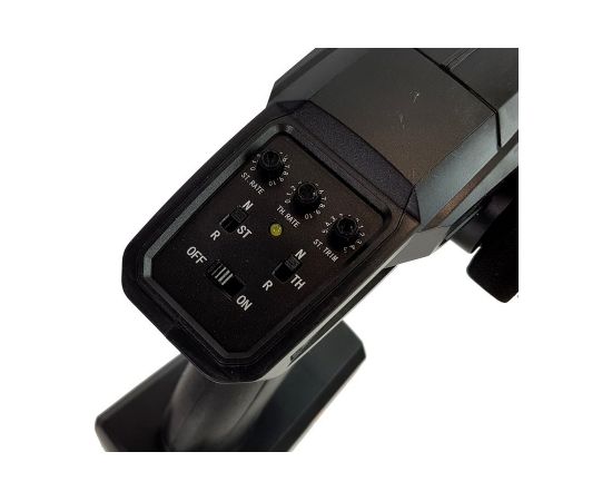 Specification: - Colour: blue - Materials: metal, electronic components, rubber, plastic - Scale: 1:18 - Drive: 4x4 - Lithium battery: 7.4 V 1200 mAh - Frequency: 2.4G - Motor: 380 brush motor - Remote control time: approximately 18 minutes - Charging time: 2h - Power supply for remote control controller: 3 AA 1.5V batteries (not included) - Child age: over 14 years old - Remote control range: 80 m - Wheel base: 12 cm - Wheel diameter: 6 cm -Speed: 45 km/h