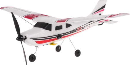 Его небольшой вес позволяет долго находиться в воздухе, что делает его идеальным для полетов на свежем воздухе. Самолет питается от аккумулятора 3,7 В (в комплекте), а пульт управления требует 4 батарейки AA (не входят в комплект).