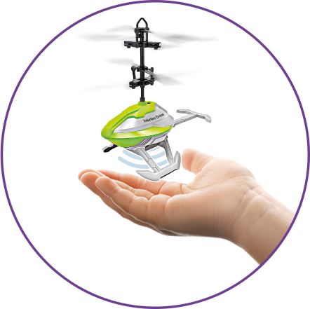 Мини-дрон, самолет с ручным управлением. Придумывайте новые трюки и получайте удовольствие от этого дрона с огнями. В комплект входит аккумулятор, заряжаемый через USB-порт. Продажа в разных цветах. Запустите Дрон и положите под него руку, дрон поднимется.  |