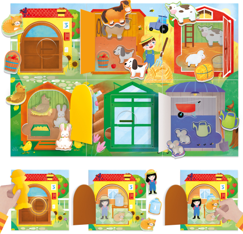 | Kas ir šķūnī? Kur paslēpusies mazā pelīte? Palīdzi zemniekam sakārtot fermu: atver mazās durtiņas, atrodi formas un ievieto tās pareizajā vietā. Oriģināla un aizraujoša spēle ar slēdzenes un atslēgas mehānismu un daudziem atklājamiem elementiem, kas attīsta roku veiklību, novērošanas spējas un atmiņu. | ||||||||||||||||||||